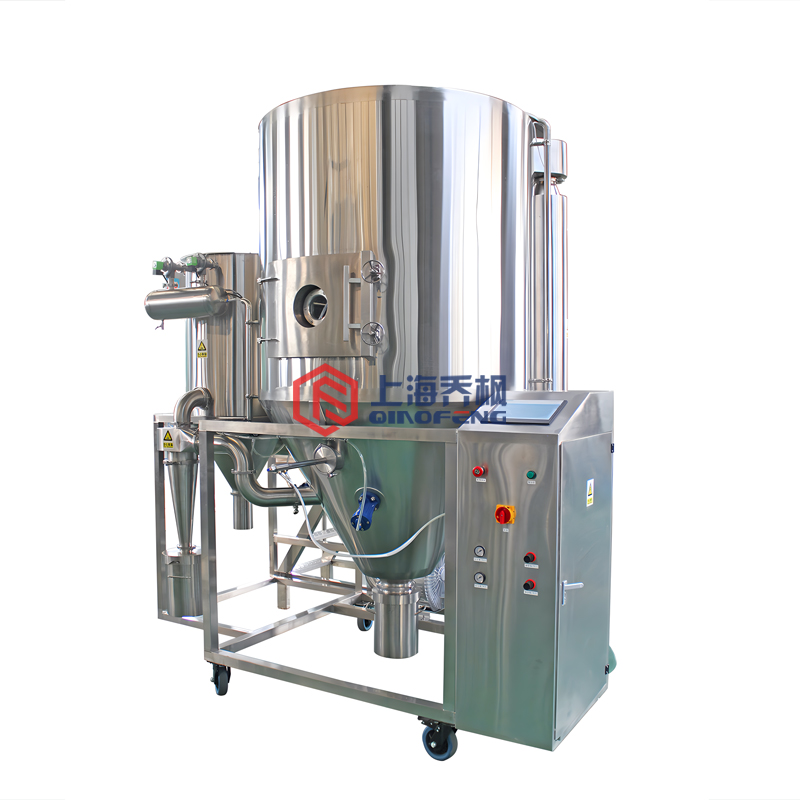 QFN-ZL-E系列造粒噴霧干燥機(喬楓)專門的雙氣送液造粒噴頭,國內一大創(chuàng)新,直接將均勻的球形霧滴通過均勻的熱量變成顆粒。